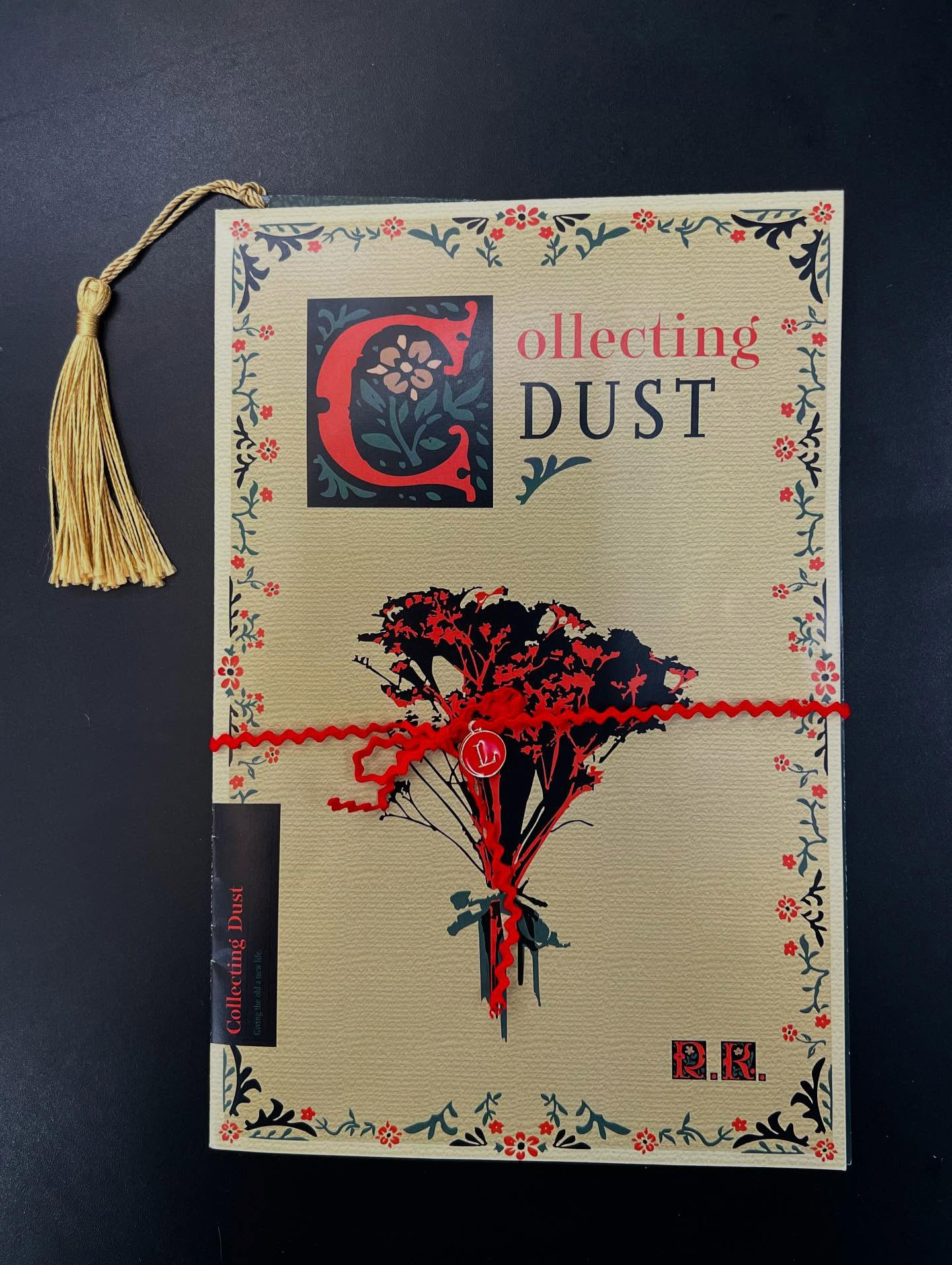 "Collecting Dust" is a posterzine that explores experimental layout, typography, and material storytelling. Inspired by life-centered and regenerative design, the project reflects my interest in giving overlooked and worn objects new meaning. Meticulous patterns and carefully chosen, delicate typography work together to echo the quiet beauty and history of objects that might otherwise be forgotten. The final piece includes a bookmark and belly band constructed using thrifted and found materials, reinforcing the concept of extending the life and story of everyday items. Through this project, I explored how typography, pattern, and physical materials can work together to create a thoughtful and intentional narrative.